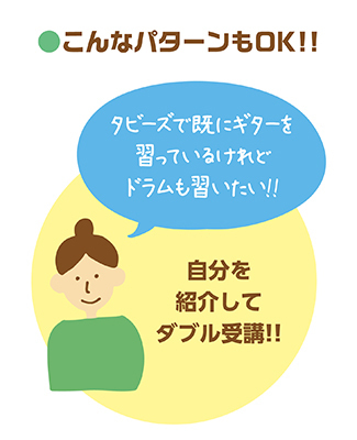 タビーズで既にギターを習っているけれど、追加でドラムも習いたい。こんなパターンもOKです!