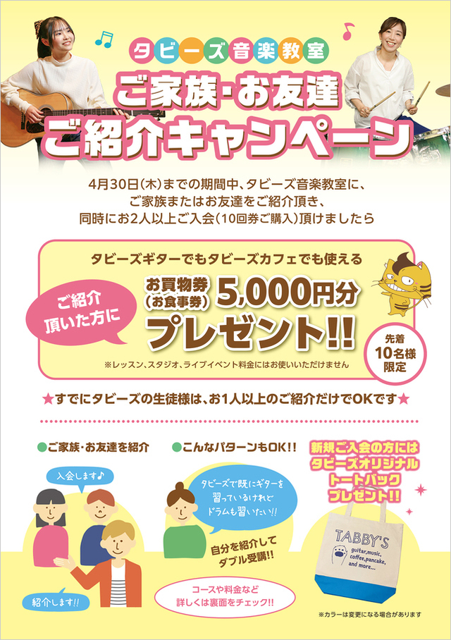 ★既にタビーズ音楽教室の生徒様は、お1人以上の紹介だけでOKです