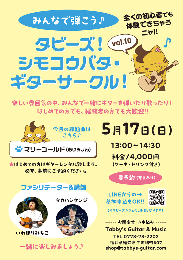 ●はじめての方は、ギターレンタルいたします。必ず事前にご予約ください。