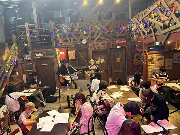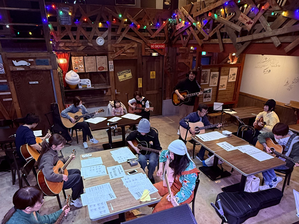 楽しい雰囲気の中、みんなで一緒にギターを弾いたり歌ったり!はじめての方も、経験者の方でも大歓迎!!